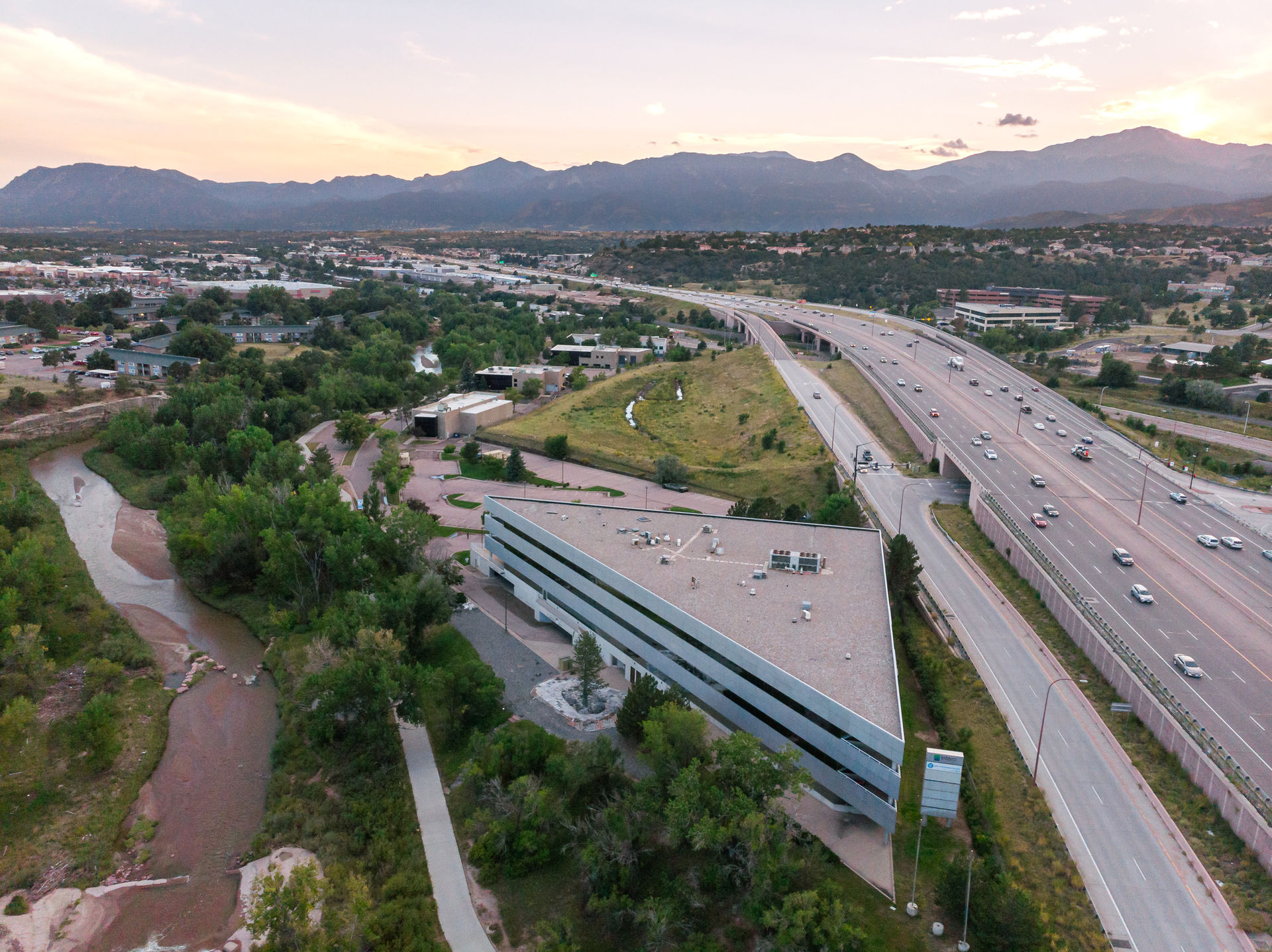 Pikes Peak i s an iconic Northern Colorado Springs building fronting I-25. Amenities include fiber services, on site management and maintenance, and automated building control systems. The building is minutes from executive housing, UCCS, retail centers, restaurants, hospitals, and more. The building is perfect for tenants who want to provide options to their staff as there is a commercial grade gym, walking proximity to restaurants along monument creek, and quick access to pulpit rock for those who like to hike. In addition, this Class A building offers plentiful parking along with garage parking, 24/7 video surveillance, keycard access, and day and evening porter services.